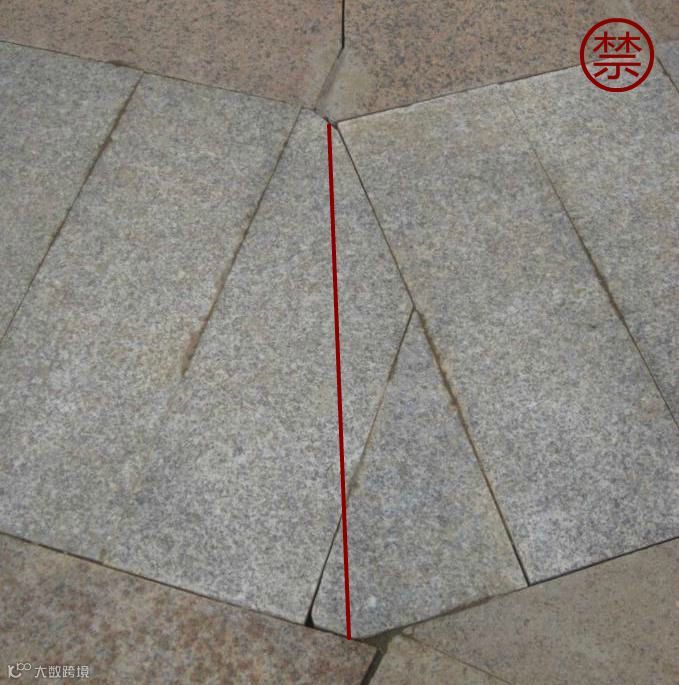 重要节点铺装排版时,图上放样和实地放样相结合。无法满足所有板材套用模数时,可在边角等较隐蔽部位出现45°对拼或大小板材,大面铺装板材规格应尽量统一,以降低施工难度。