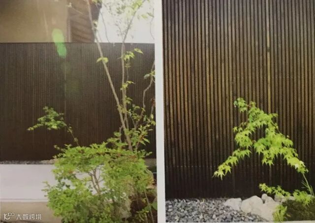 纵观庭院整体空间,可见松井信设计师的设计手法在该庭院中游刃有余。两面竖格子栅栏围墙分别置于建筑的左右两侧。竖格子栅栏整体采用结实的笠木做成,与混泥土墙壁十分相称,为庭院创造出一个高雅的空间。