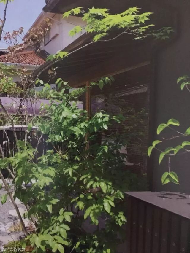 绿色的树木与建筑相互映衬,营造出和式庭院的感觉。