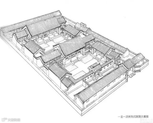 一主一次并列四合院