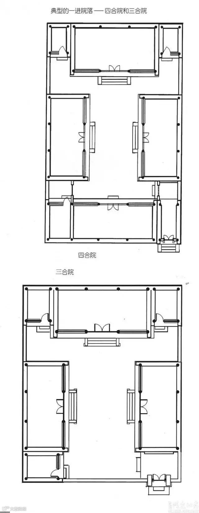 一进四合院和三合院平面图