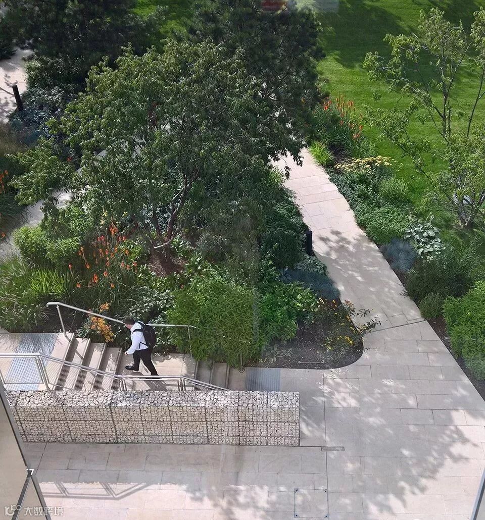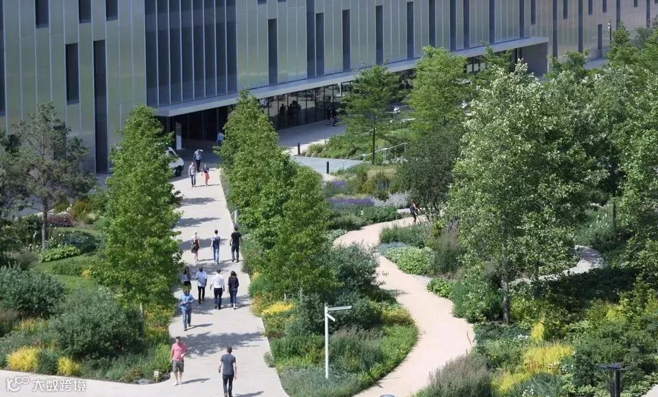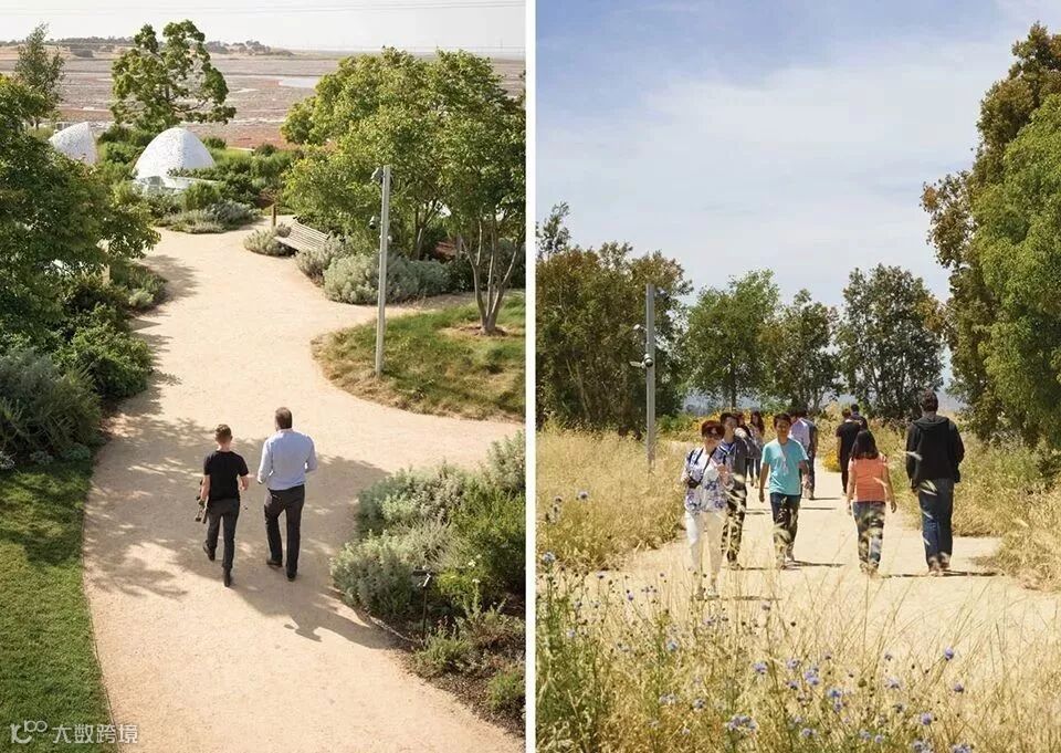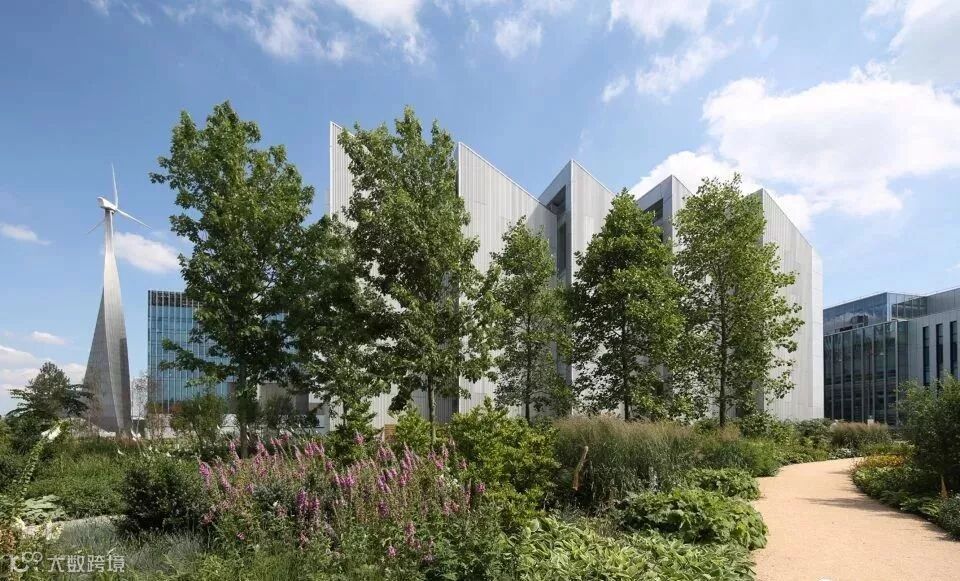 △面积为9英亩的屋顶公园展示了建筑与自然系统的结合,促进了员工与其所在环境间的联系,重构了人们对于建筑和景观的认知