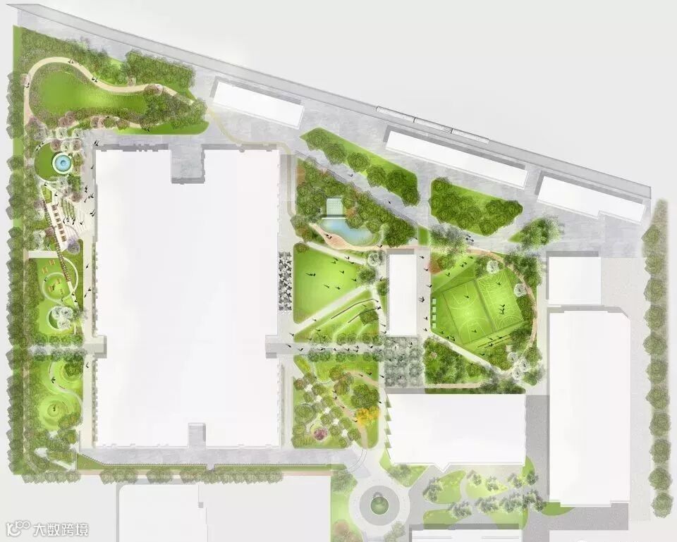 △场地西北部的贫瘠地块在景观规划下获得新生
