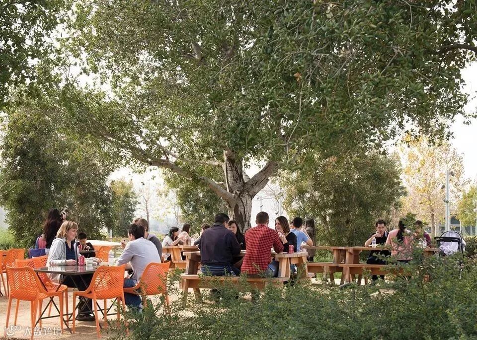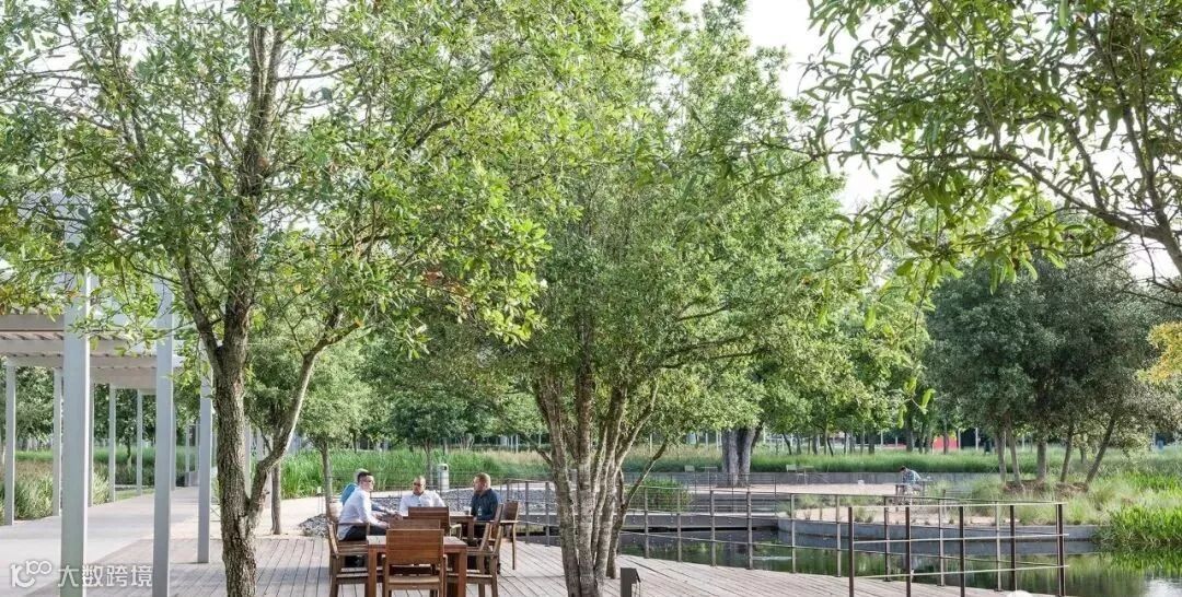 △橡树林下的空间很受欢迎,员工在此午餐,这里夏季也是好的休憩地