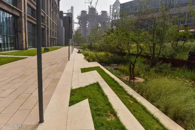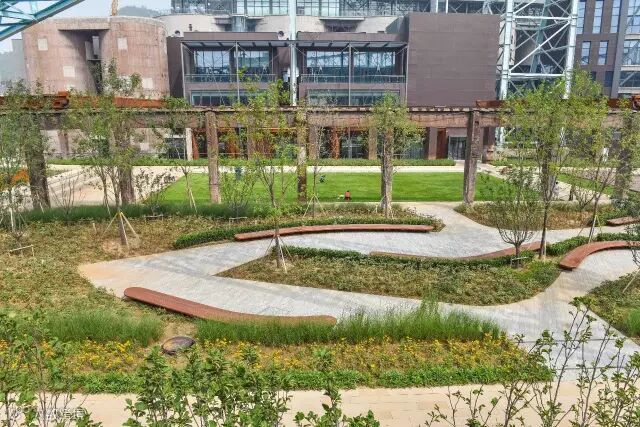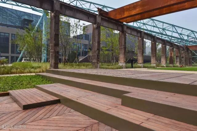 △设计利用场地原火车头及工业设备作为场地雕塑、小品,展现了场地记忆