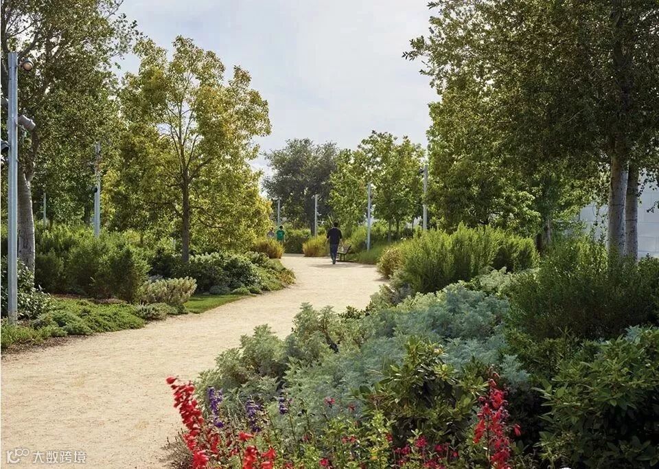 △公园以一条半英里长的流动式循环路径为中心,同时辅以一系列花园小路,通过不同的植被区域与集会点和观景点相互交织