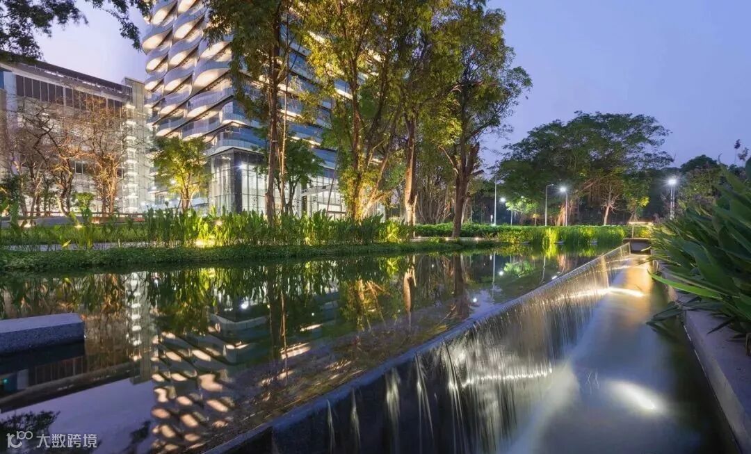 △建筑与景观以一种优美且具有科技感的方式相互交融,迎合了功能需求和场地环境,使开放空间最大化,同时将热岛效应降至最低,雨水径流受到充分的控制和处理