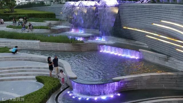 景观设计体现场地的四季更迭变化,打造了休闲剧场、场地运动、艺术雕塑、水景四大主题景观。5万平米超大景观园林,绿化率高达30%,形成了独树一帜的都市园林式办公环境。独具匠心的音乐喷泉和园林景观,远远望去如同洒满阳光的花园,与楼群相辅相成。