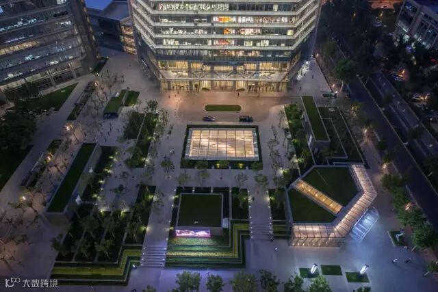 项目位于中关村核心商务园区内,作为北京二环旁边地标性建筑周围的公共空间,该项目园林设计极大改善城市环境,营造出一个开放亲和的景观空间体系。易兰负责了园林景观概念、方案、施工图等重要设计。设计提出“在花园里办公”的理念,将以前那个无序的、未充分利用的户外区域转化成了办公人群和市民活动的城市客厅。