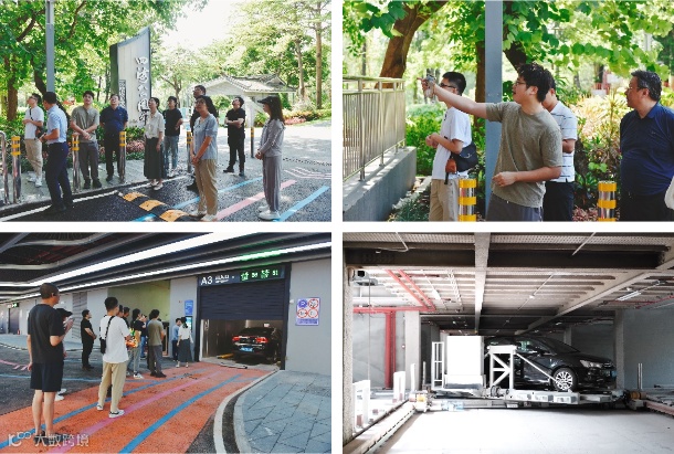 8月12日上午,在华森公司副总建筑师周路、高级设计师何润豪带领下,大家一同参观了华森公司近期绿色设计作品深圳四海公园机械立体车库与虚拟大学园。