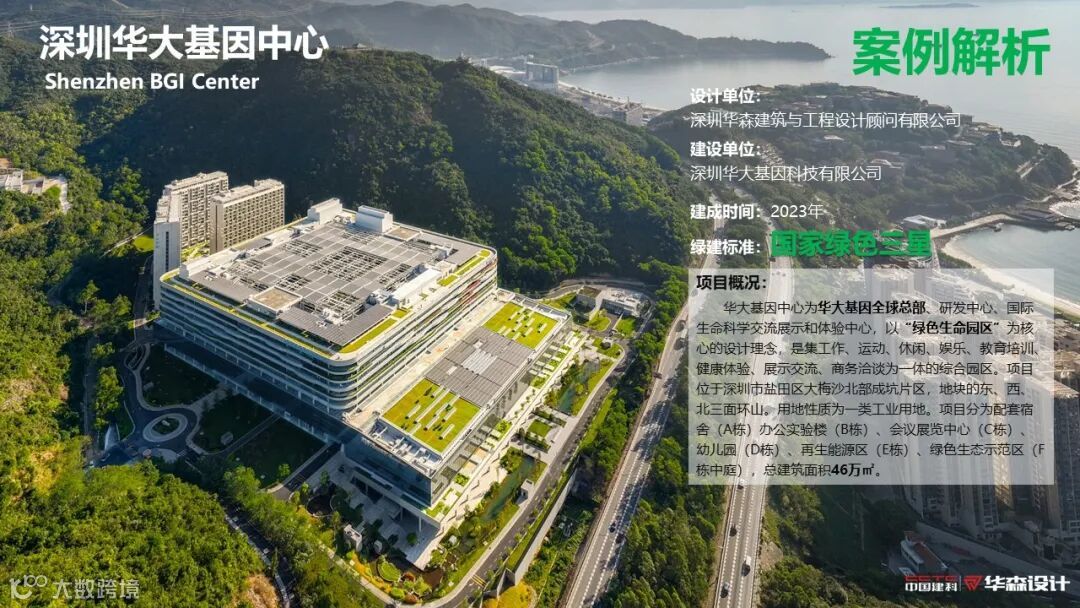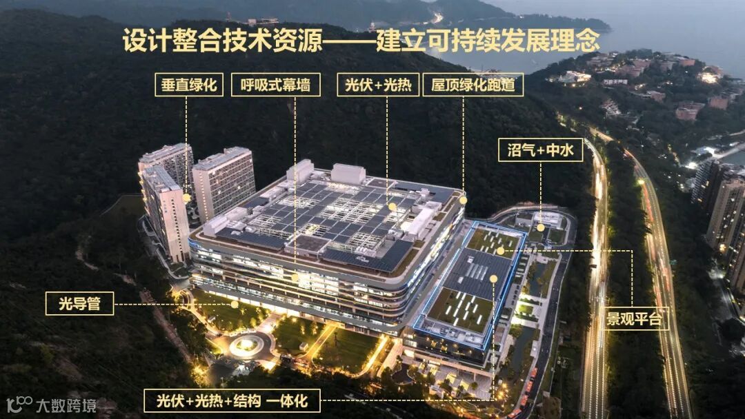 华大基因时空中心项目紧邻盐田大梅沙景观片区,依山傍海拥有良好的环境资源。我们以“生活、生产、生态”三生融合为理念,这三点始终贯彻在设计中,基于业主的需求,用一贯的理念串联在一起,综合外在、内在因素,满足业主普适性及定制化的使用需求,以“生命方舟”概念为指引,采用正向绿色设计方法,强调空间的使用体验,打造功能复合、绿色健康、实用高效的绿色园区,结合38项绿色技术,营造了可持续发展的绿色空间。