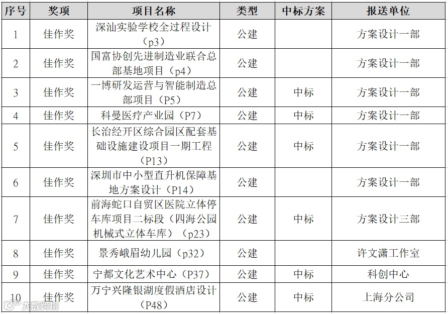 评选活动共收到各建筑部门和分、子公司76个原创方案和65个绿色设计方案。为持续贯彻落实绿色发展理念,鼓励建筑师从方案阶段即引入绿色理念,本年度原创方案评选在传统奖项基础上,继续设立绿色设计奖。