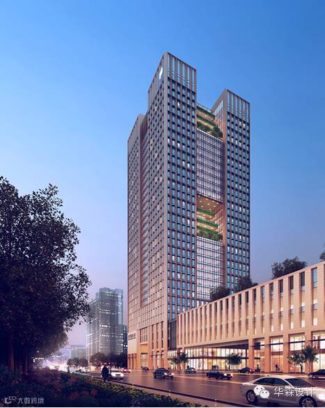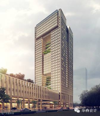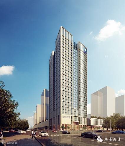 鉴于其企业总部的身份,建筑宜采用稳重,大气,尊贵的建筑形态,同时考虑节能的要求,因此采用较多实墙面的立面形式,各个面自身对称并带有三段式划分的立面效果,在设计中充分考虑通风,采光,遮阳,骑楼等要素,延续地域文脉。裙房部分以花岗岩材料为主,彰显建筑尊贵感;塔楼部分采用仿石PVDF喷涂版,在保证材料视觉统一性的同时也节省了造价。在横向仿石线条的下侧,采用具有光泽的深色铝板,使得建筑从下向上可以看到另一种视觉效果,使得立面更为精致。