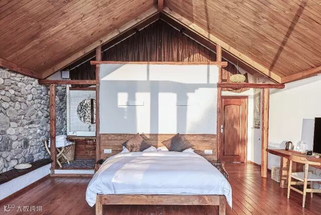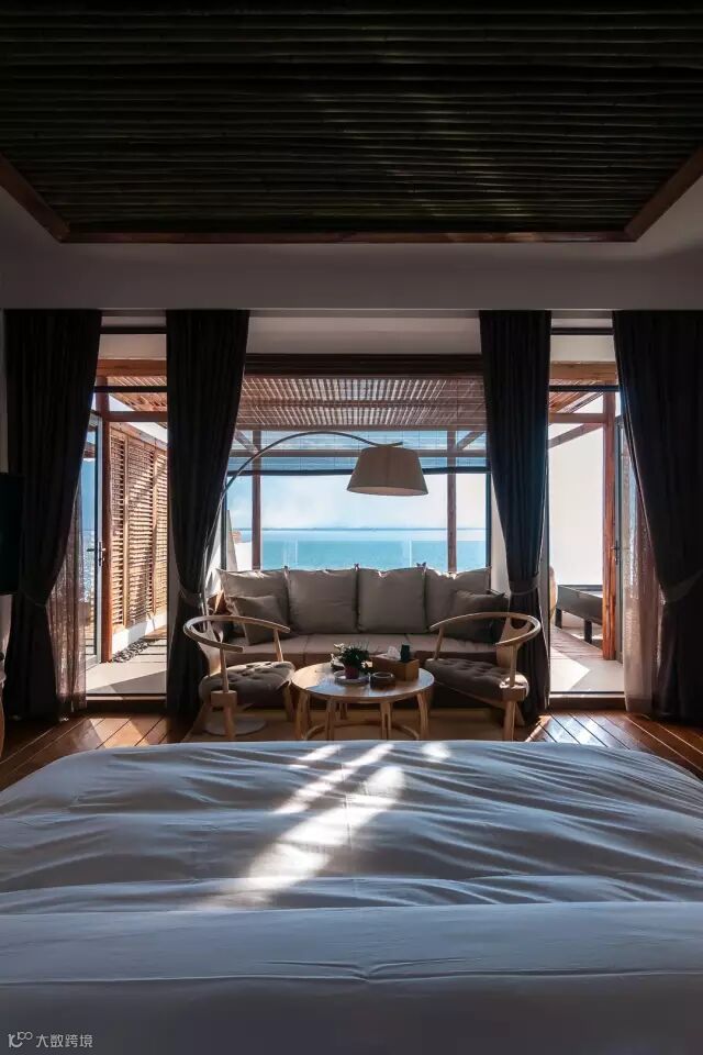 经过一些阶梯与露台,你将会到达走上二层与三层的部分,完成从室外进入室内的过程(或者选择更加正式的楼梯空间)。而此时,每一间都独具特色,可以躺在床上看到星光云海、日出日落的海景房正在等待你。