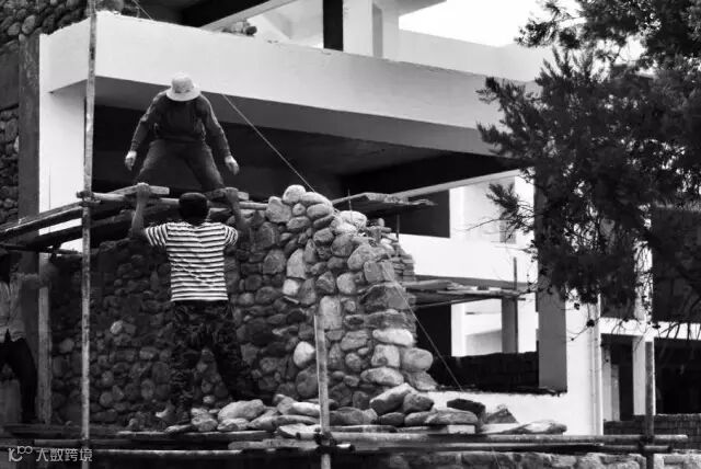 2014年7月/主体结构完成,石墙自地面生长而出。
