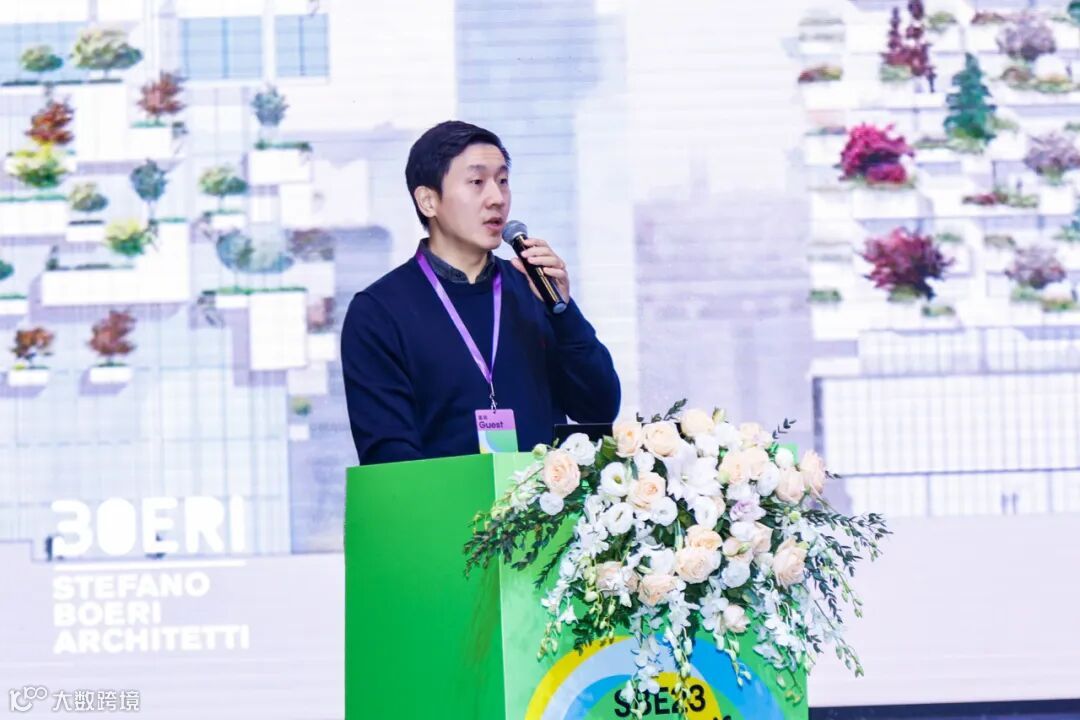 胥一波总分享了在欧洲建成的项目以及我国绿色建筑垂直森林理念。他指出,每座垂直森林的建设是一种立体绿化森林、公园和当地城市的景观的联合,每座垂直森林本身都要寻找本地的适森林、本地的土壤、本地的物种,进行它的生长建设。最后,他通过分析已建成项目的现状,展示了垂直森林在改善城市自然环境和增加生物多样性方面的有效作用,并提出了生活在森林城市中的愿景。