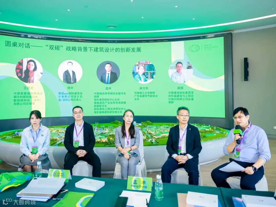 在圆桌对话环节,公司总建筑师赵强与中国城市科学研究会秘书长助理、绿色建筑研究中心主任、健康建筑产业技术创新战略联盟秘书长、国家建筑工程技术研究中心绿色健康建筑研究部主任孟冲,华南理工大学教授、广东省建筑节能协会会长赵立华,中国智慧城市研究会碳中和研究院院长、新绿碳科技(深圳)有限公司总经理王勇贞,德国gmp国际建筑设计有限公司设计总监、深圳公司负责人徐吉等各位嘉宾,围绕“双碳”战略背景下建筑设计的创新发展这一主题进行了一场精彩的讨论,每个人分别结合自己的研究领域,运用不同的思维与视角,通过对话的形式,拓展了彼此思维的边界,更为未来城市与建筑发展提供了新的思考方向。