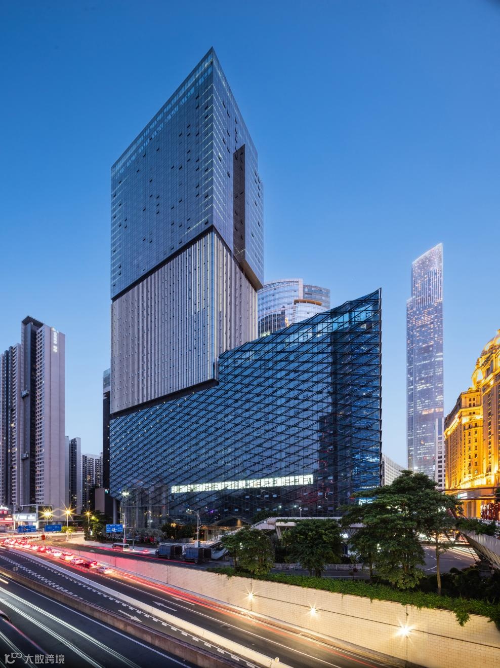 技术特色:在珠江新城用地超高容积率计率的设定下为了妥善处理建筑与街区的关系,在主干道交接的东北角,塔楼底部做了15米进深五层楼高的架空和退让,不仅扩大了城市低层视线的通廊,并成为了开放为市民的公共空间。