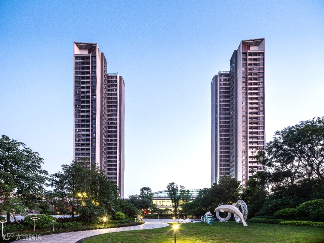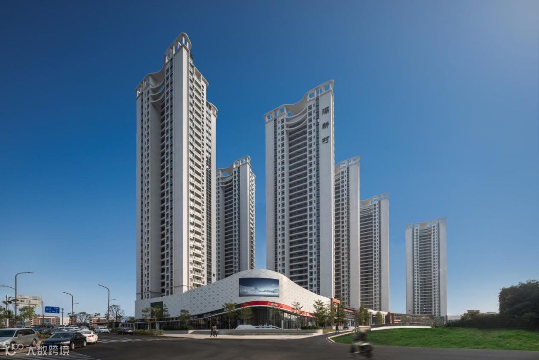 技术特色:塔楼布局沿场地外圈布置,保持中心花园的超大视野,T3、T4、T6多种栋型组合,塔楼扭转,避免对视并打破呆板的城市界面,百米高塔围合中心两栋超高层,塑造灵动的天际线,与不远的起伏山丘呼应。建筑为塑造滨海城市形象,采用清爽淡雅的灰色两色搭配,灰白相间的墙体塑造光影感,山墙与屋顶微倾的框架如中国水墨画勾落出有序的极简线条,构成一副写意山水画。