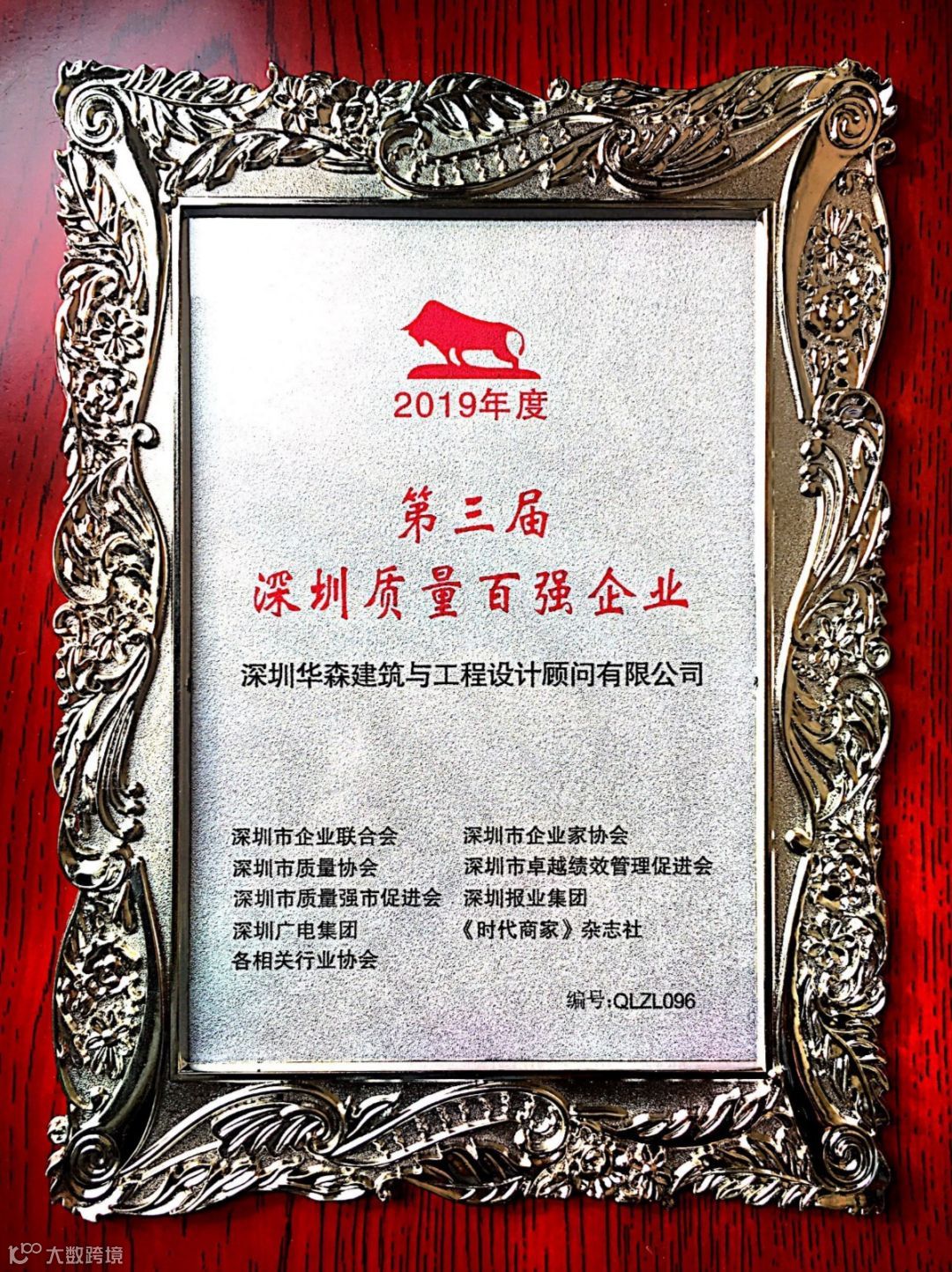 2019年,公司荣获“改革开放40年广东省勘察设计行业最具影响力企业”,被评为“深圳特区成立40年建设行业先进集体”,成功入选“2019深圳500强企业”和“深圳市质量强市骨干企业”,成功通过第十六届“深圳知名品牌”复审等荣誉。