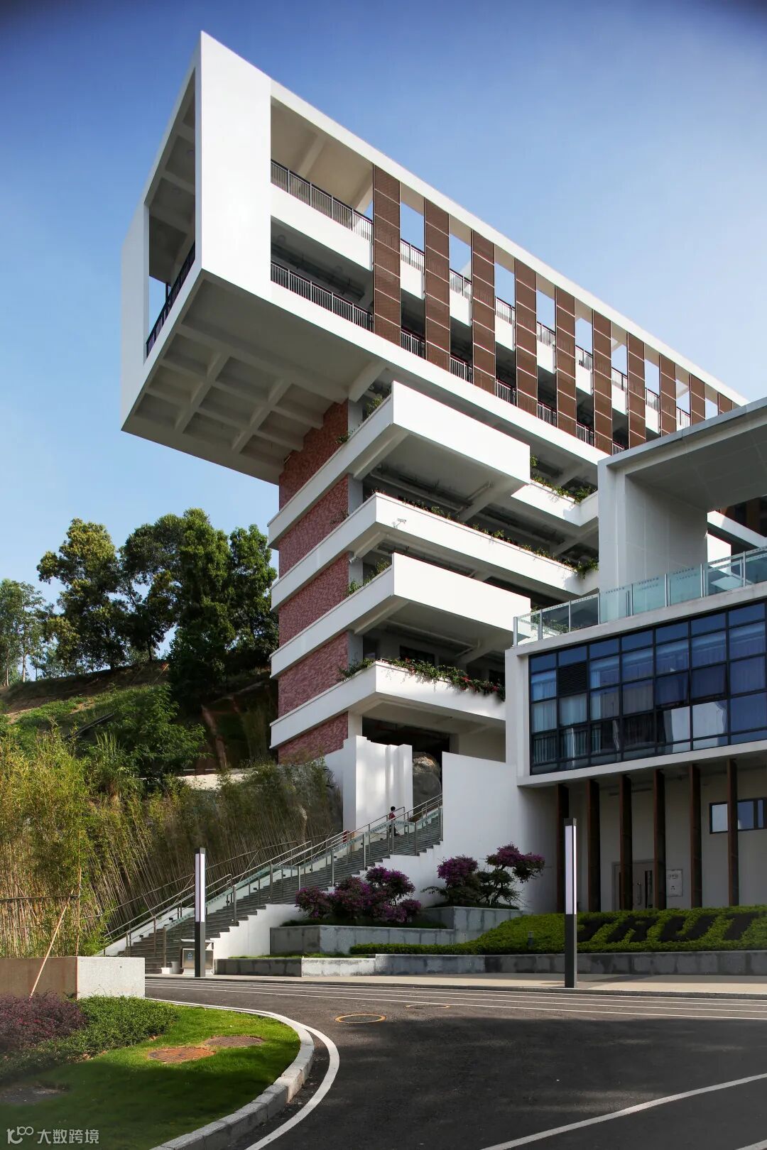 △从教学楼和宿舍的高楼层可以望到西面的海湾,平台之上是山海之间的舞台(摄影 曾天培)。