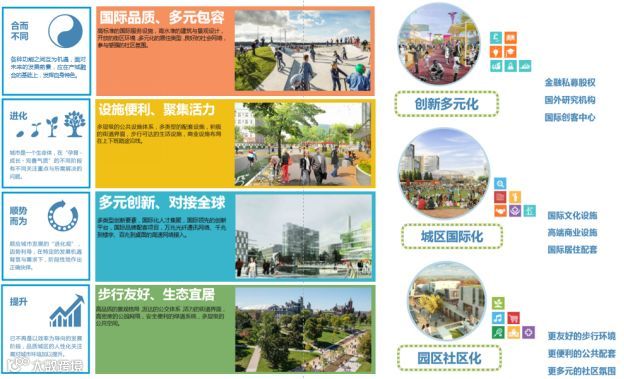 功能组合方面——双引擎驱动,集约式开发:以国际商务活动为核心构建打造国际商务、商业服务、文化创新、舒适生活、休闲活力等“五大平台”。