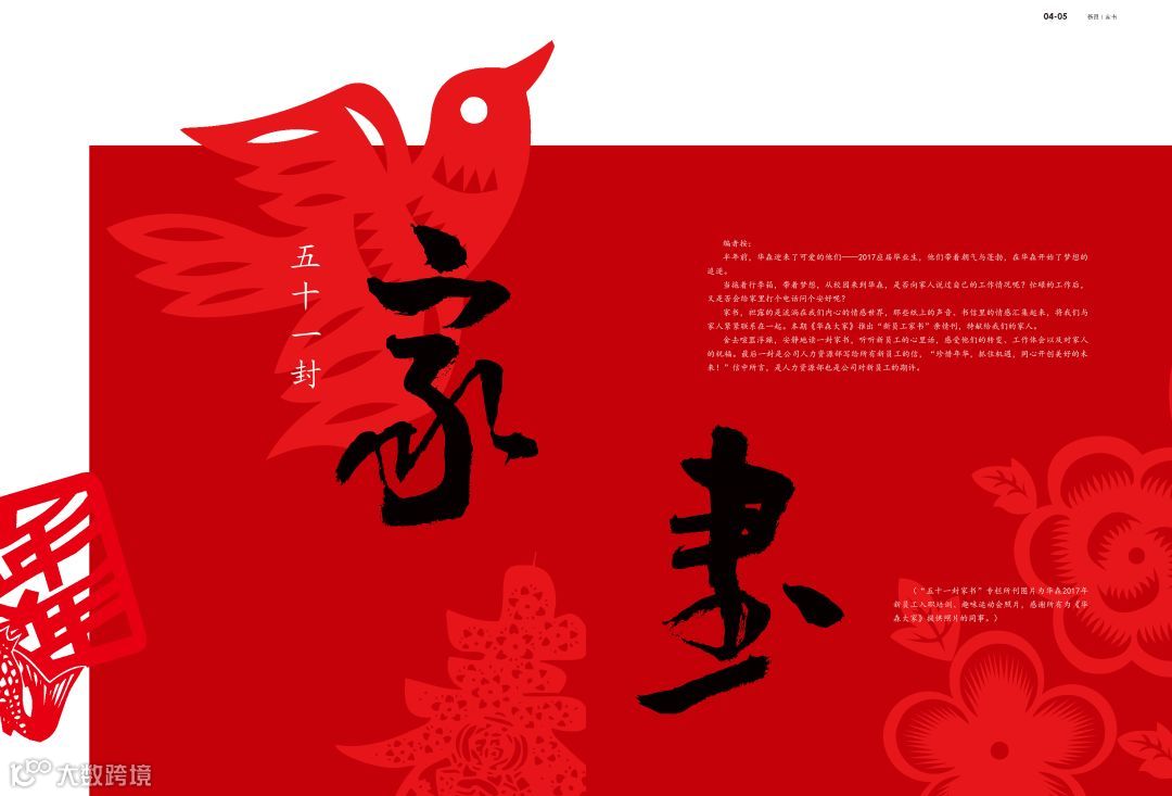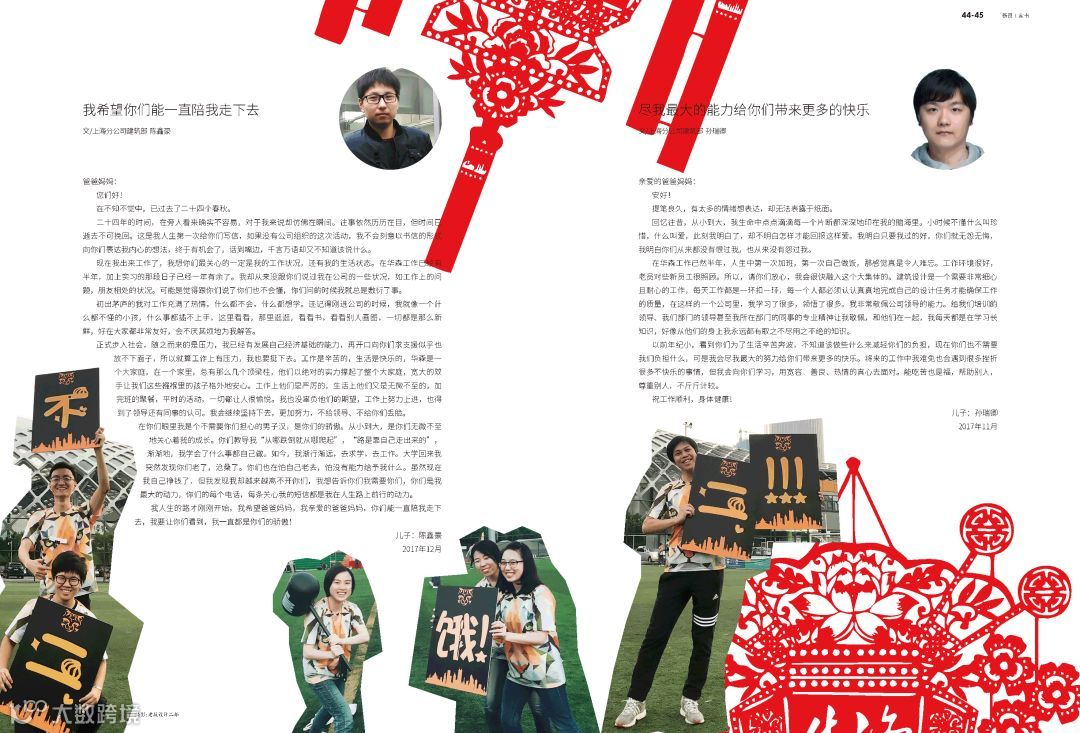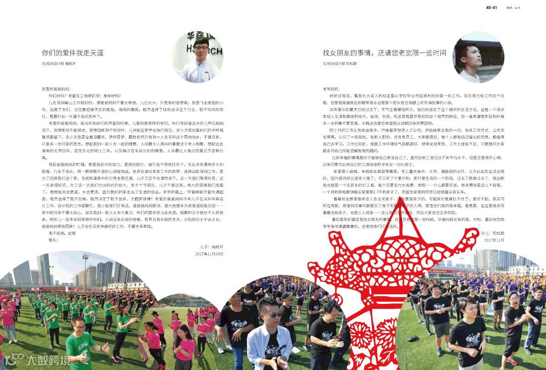 2018年开年第一期,《华森大家》隆重推出新员工家书专刊。五十一封家书,记录五十一段温情,亲爱的家人,请翻开家书,倾听这美好的祝福。2018年第一期(总第53期)《华森大家》温暖出刊!