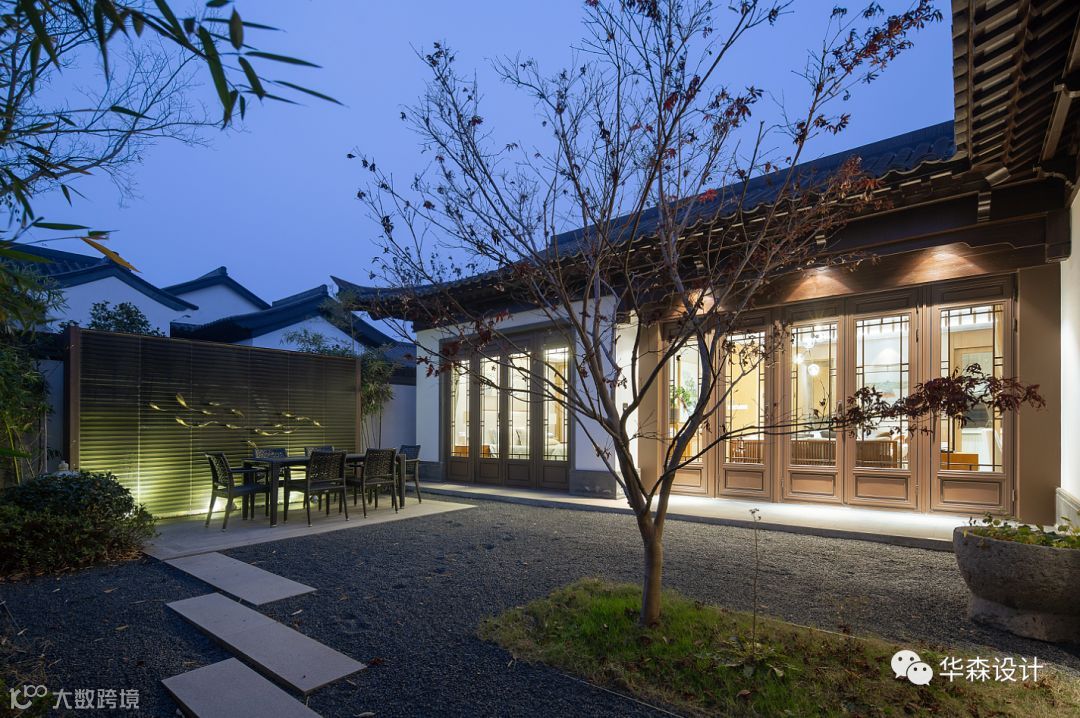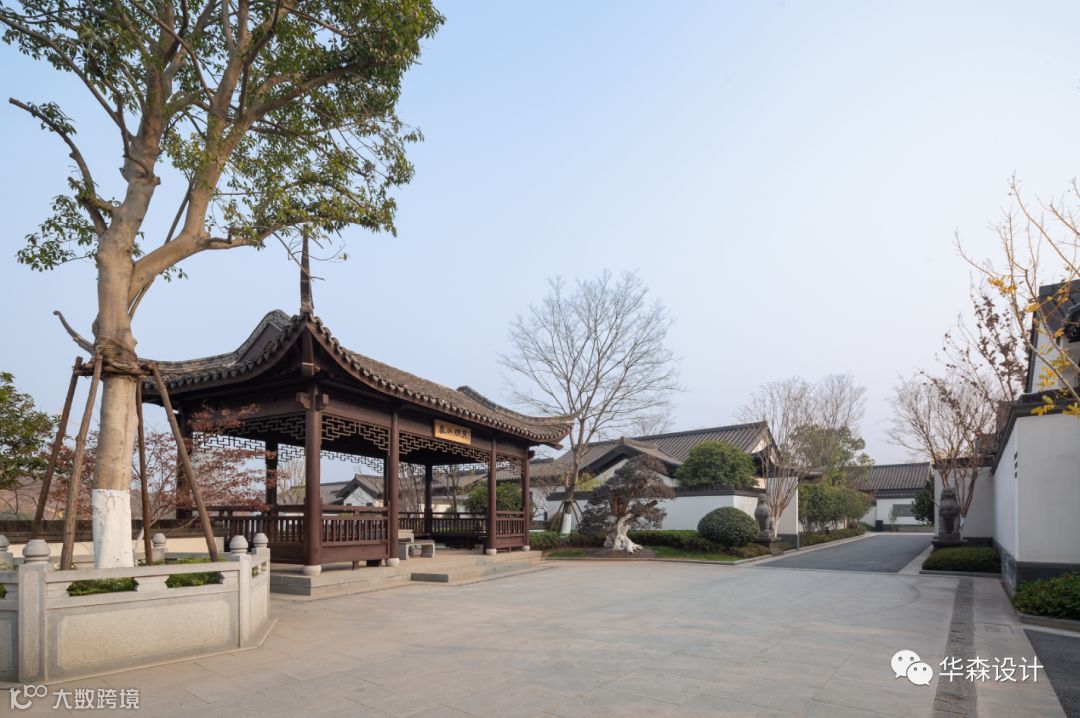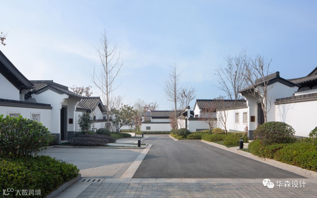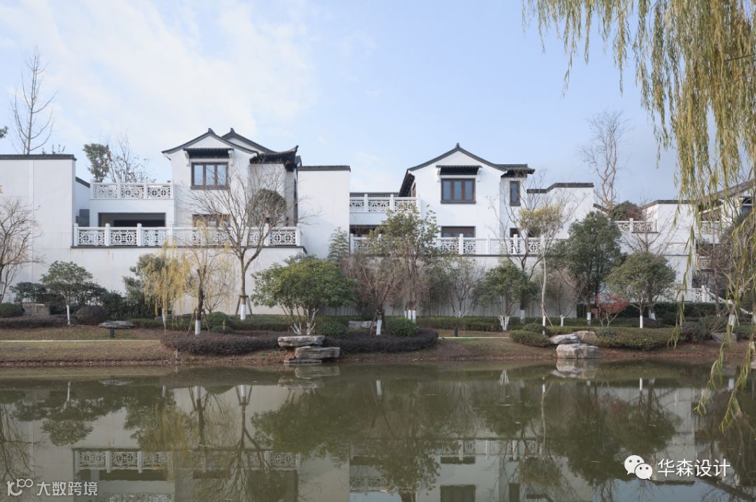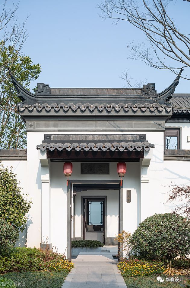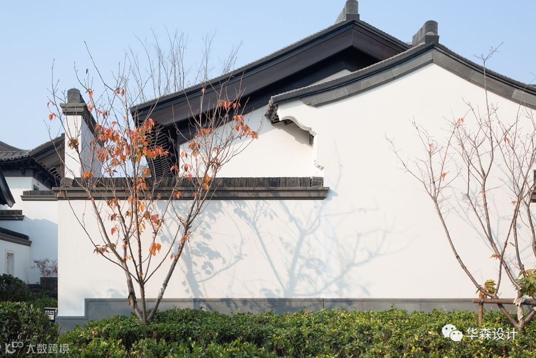建筑造型整体延续了江南民居布局及立面风格。完全尊重传统做法,力求展现原汁原味的传统中式风格。整体色彩采用白色与黛青色为主,营造素雅祥和的氛围、柔和的色调,如入水墨画般使空间更富有意境。