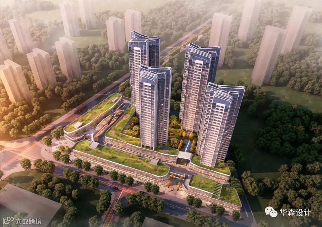 项目用地性质为商业+住宅用地,商业面积占总建筑面积的30%,为最优化商业和住宅的品质,项目沿西、南侧城市道路打造开放式商业街区,街区同时作为连接城市公园、城市路口、小区主入口的公共开放空间,激活片区城市活力。