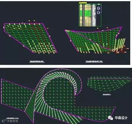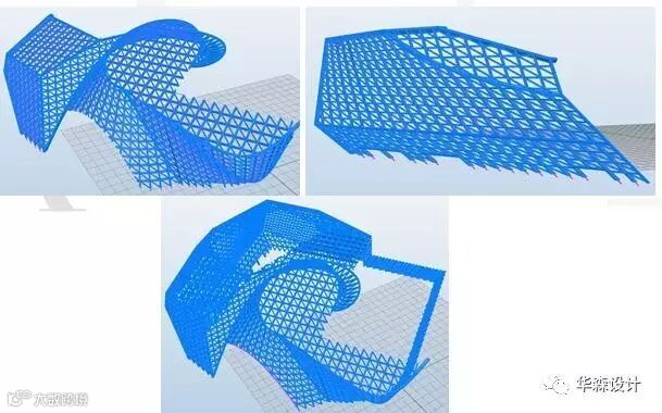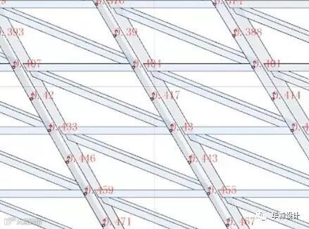除了形式的异形,两馆项目在结构表皮上也存在大量异形曲面,参数化的方式分析了这些钢结构的曲率和优化方向。