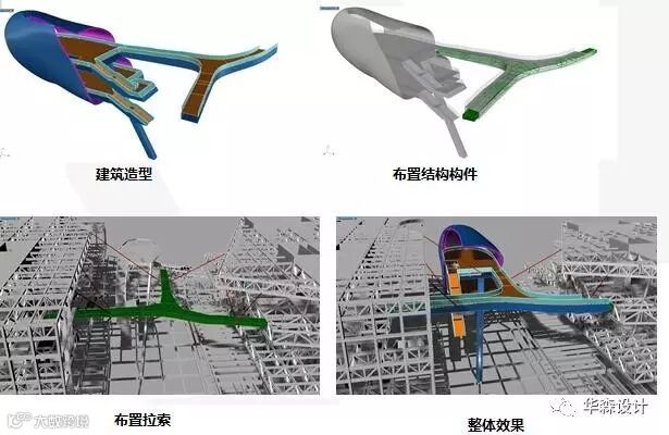 屋盖系统(包括侧面表皮钢结构系统)为杂交结构体系