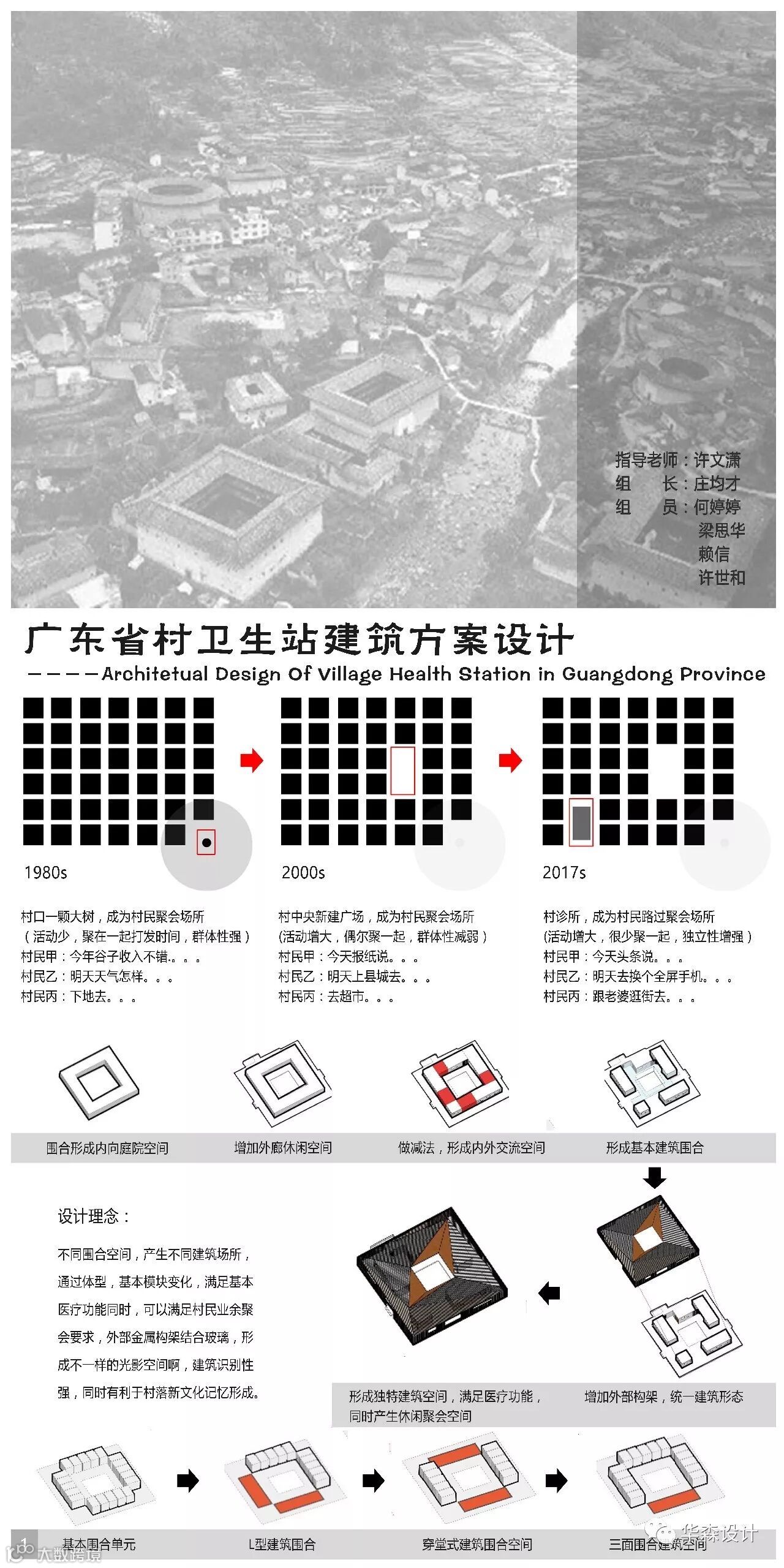 本次课程的结业作业是对广东省农村卫生站进行建筑方案设计,学员共分成六个小组,每个小组分别由不同的导师进行指导。交流会上,各小组对各自的设计方案进行汇报。