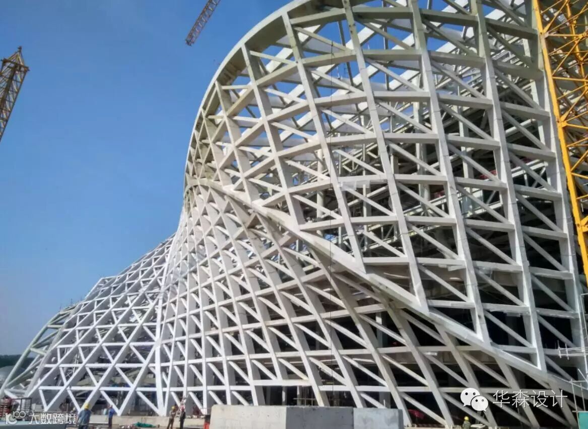 2、结构设计结合展览建筑的使用功能,将结构构件尽量布置在建筑的外围,展示空间仅由核心筒等少量竖向构件传递楼面竖向荷载,形成新颖的大跨度大悬挑的整体空间,充分满足了建筑造型及功能使用的要求。