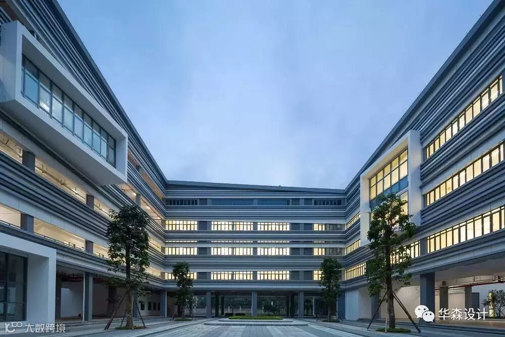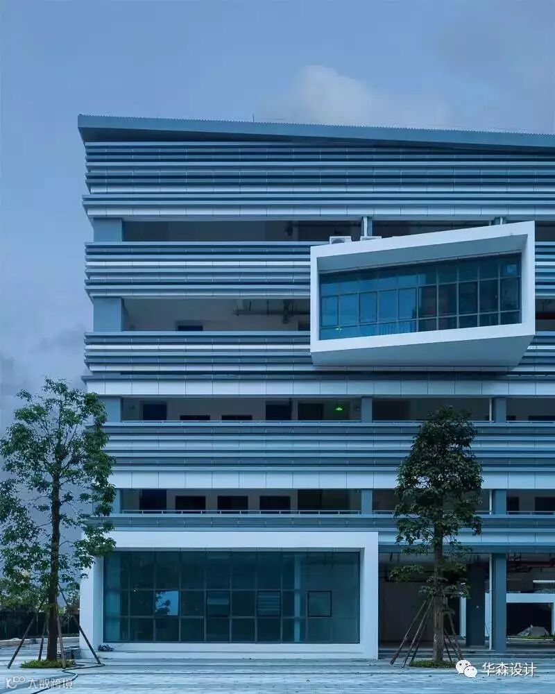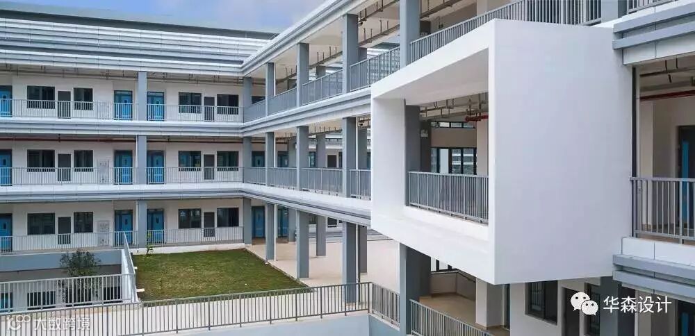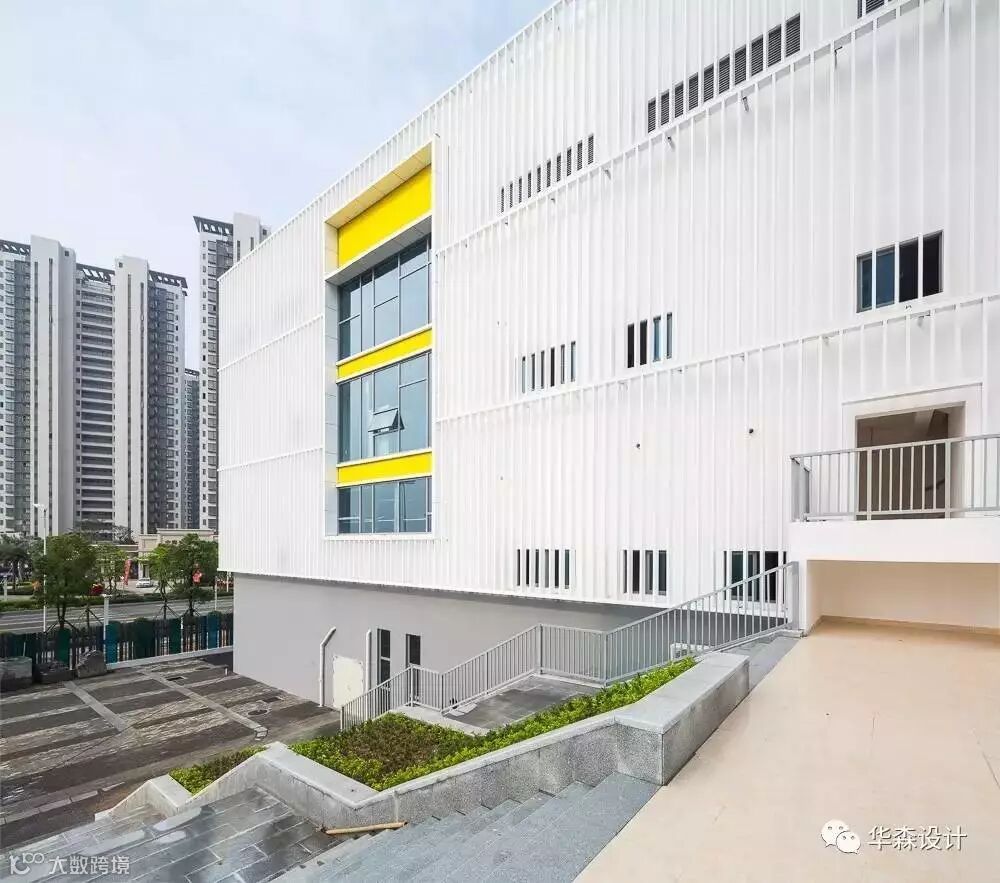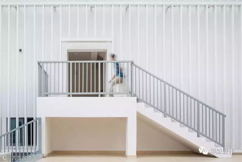 建筑外观采用白墙搭配横向杆件,杆件随功能区疏密布置,用较低成本创造有趣的立面变化。立面力求整洁明确,教室自然采光良好。