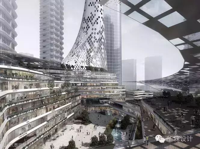 商业主题定位方面,我们的建议是针对深圳年轻人的消费习惯和消费特点,营造出互补、绿色、生态、体验的立体消费公园,打造活泼有趣的商业氛围。在商圈的心脏部位,借用共享空间的概念,将中心空地安置于基地几何中心的位置,做到对周边地块的大面积辐射,构建出四通八达的街区形态。