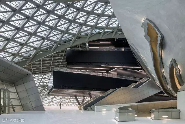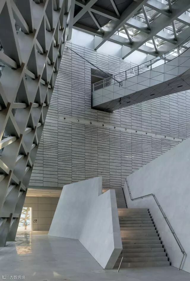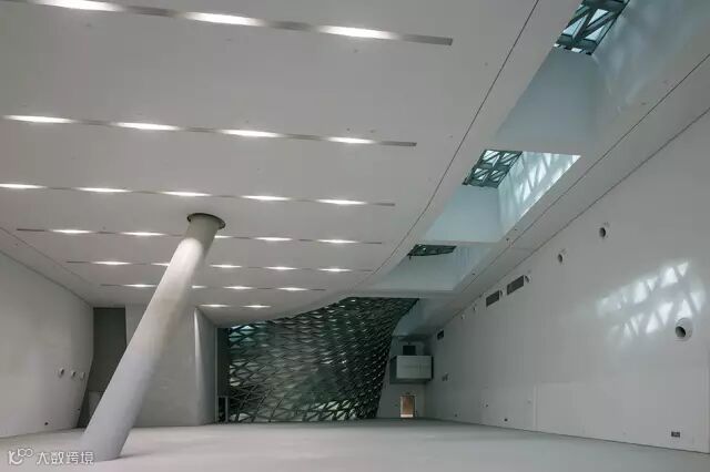 近距离看云造型,刚好在2层平台打开一个缺口,好像鸡蛋破皮一样,给参观者一个瞭望平台,极大丰富了建筑物内部的空间感。