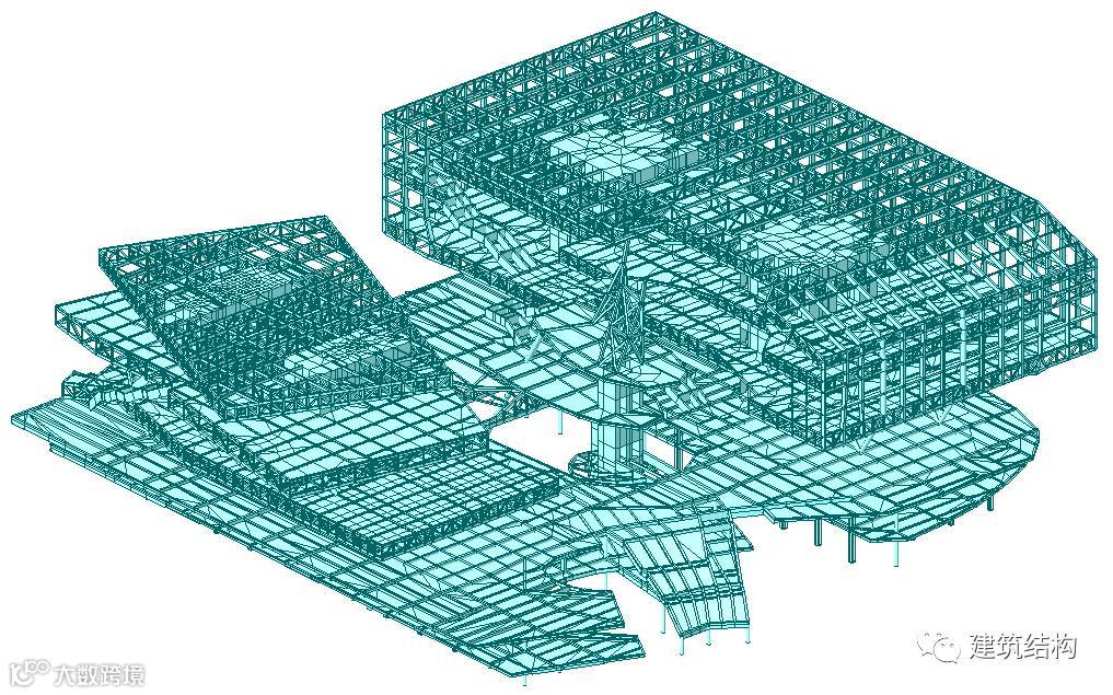 主体建筑结构以±0.00m标高、10.0m标高平台为界分成上中下三大部分。其中,±0.00m标高以下为地下室部分,所有±0.00m标高以上的钢结构不再延伸至地下层。