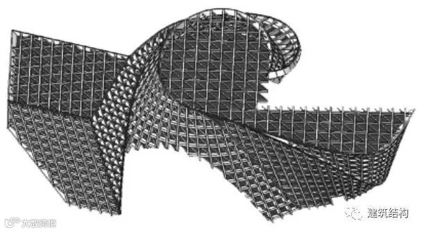 本工程在首层以下为钢筋混凝土框架-剪力墙结构,在首层以上分为表皮钢结构和塔楼范围的主体结构两大结构系统。表皮钢结构为单层交叉梁(柱)复杂多面体(曲面、折面)网壳结构;楼面系统主要为型钢桁架-钢筋混凝土楼板组合楼面,局部为钢筋混凝土梁板楼面。