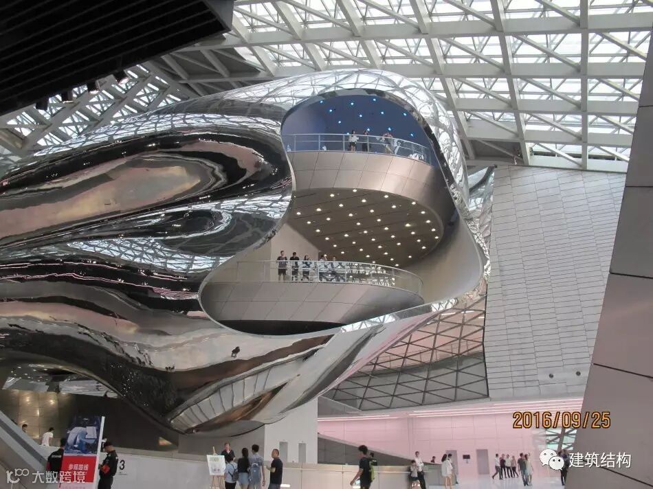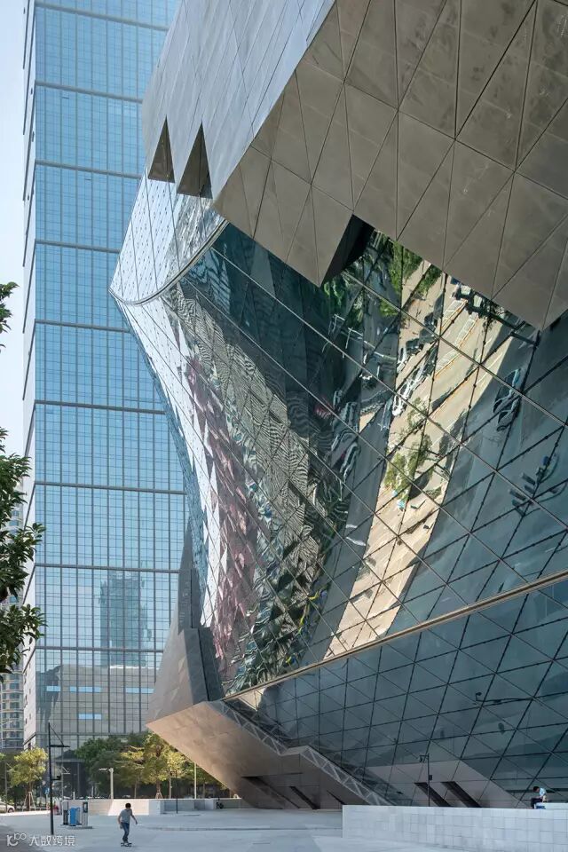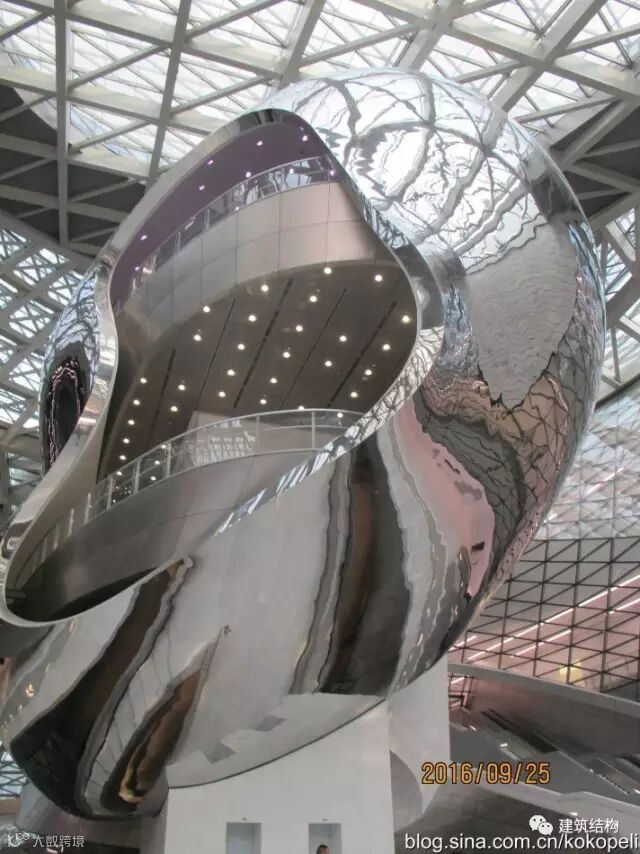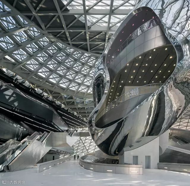 这个金属反光的东西无法用一个准确的词汇形容其创意何在,或者说其代表啥含义,但是有种高科技和现代化的感觉,与深圳城市的气质有所吻合。后来建筑师解释说这个东东起个名字叫“云”,类似云计算的那个意思,确实独一无二,建筑师创意说灵感来自于火星的一颗卫星是逆旋转的,更为可贵的是作为建设方的主管部门能接受这个匪夷所思的“怪物”,确实佩服其开放的心态。