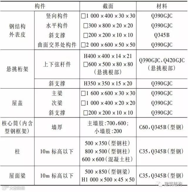 ▼深圳“两馆”项目主要构件截面尺寸与材质