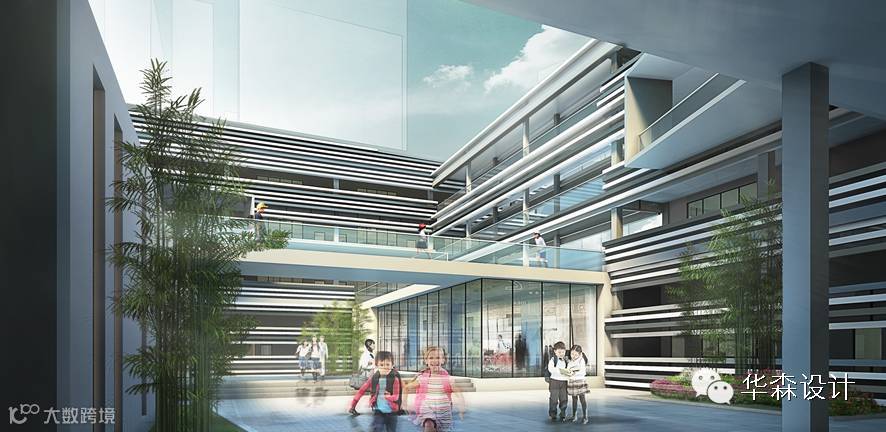 适应当地气候,、充分利用现有地形和自然条件,通过外廊、架空层、多进院落、遮阳格栅创造丰富灰空间体验,通过半围合内院、连廊、绿化屋面景观设计打造生态绿色空间。建筑与绿色自然共同营造出高雅、有文化氛围、有活力的校园环境。