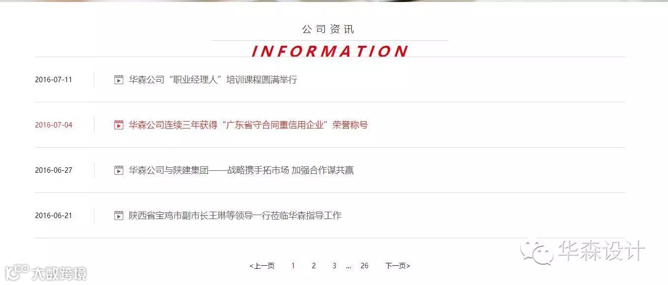 资讯一栏包含了公司资讯及项目资讯两个部分,分别介绍华森公司近期的重大新闻及最新中标信息: