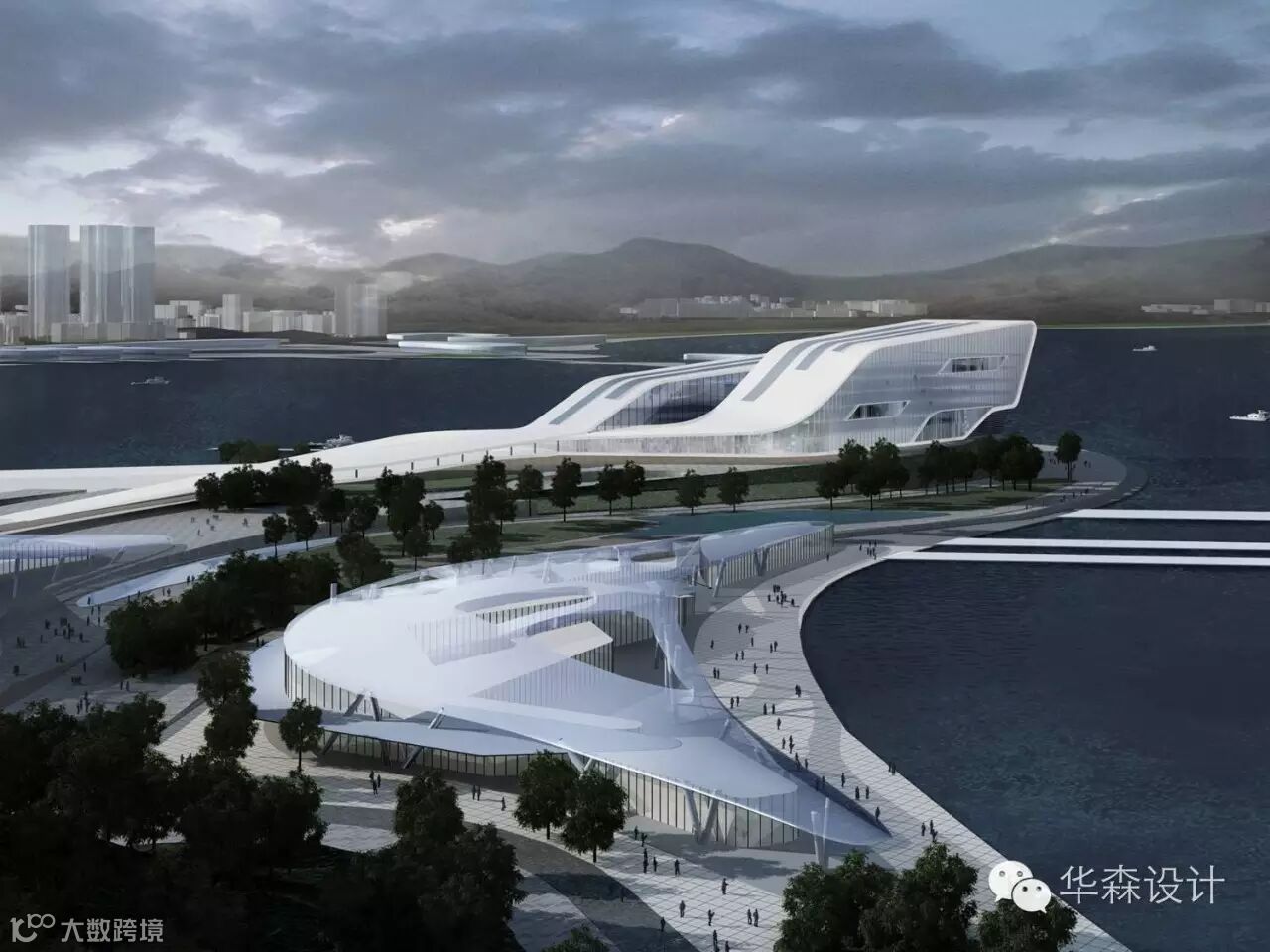 设计概念始于把海湾与岛屿融入城市的整体构架,将该区域建设成珠海的文化中心之一,强调珠海作为港口和旅游城市与海洋的紧密联系,鼓励人们亲近海洋,接触本土文化。方案将生态、文化和人工因素相结合。将音乐和自然抽象成波浪曲线,将动态的形式赋予建筑形态之中,变化和流动,在不同的高度相互融合交错。两条交错的波浪结构创造了清晰的形态、强烈的标志性和中心感,成为区域以及城市的地标。项目地址:广东珠海
