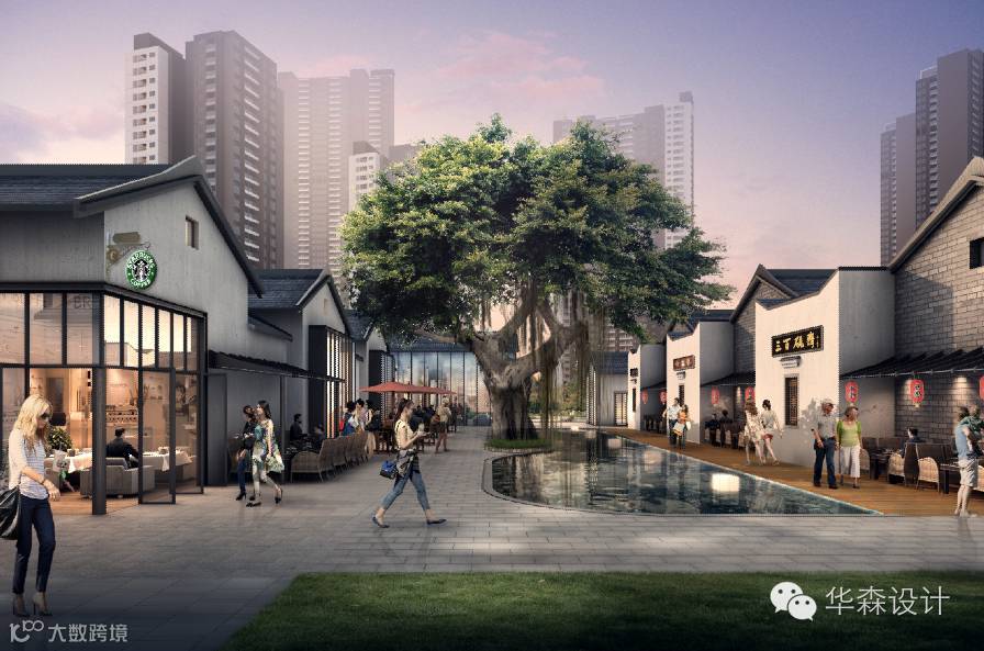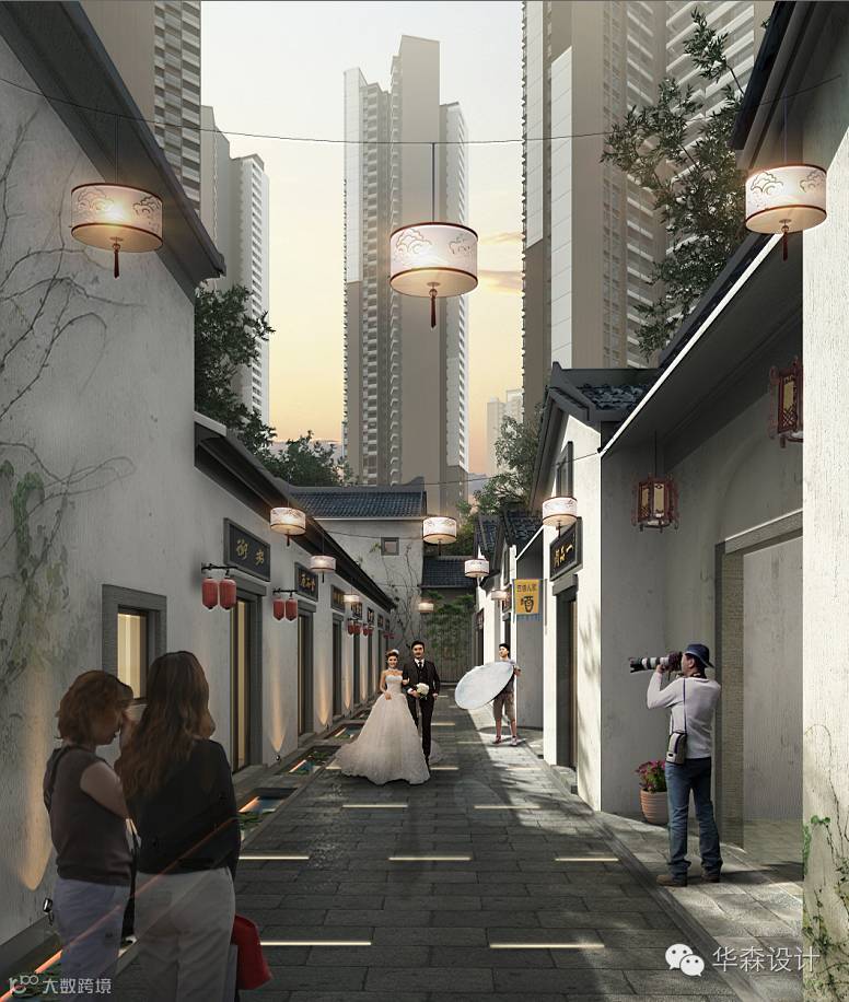 围绕客家文化主题,提取檐口、花格窗、柱廊等客家建筑传统元素,将之在商业立面上进行现代化的演绎,打造出品质卓越,意趣盎然的风情商业街。