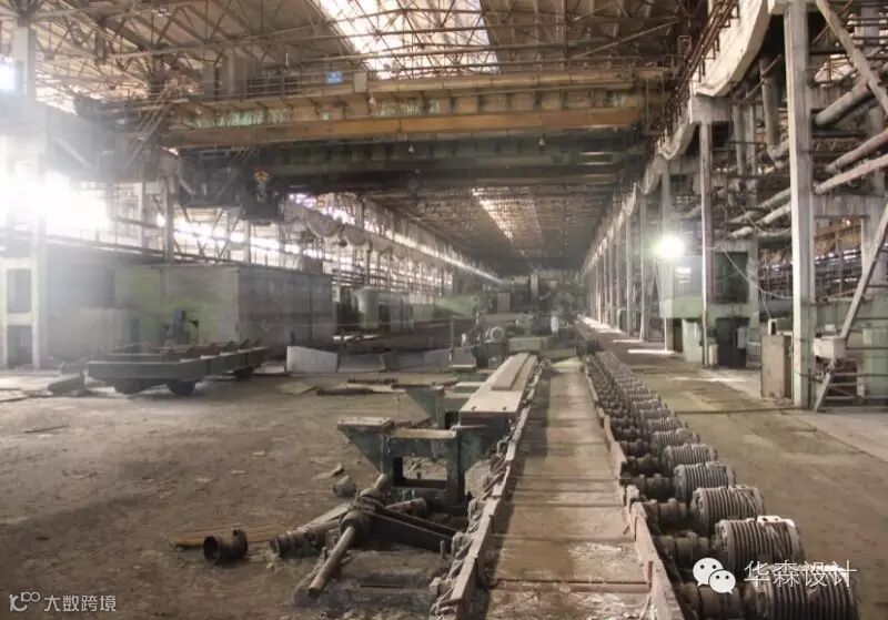 二型材老厂房长486米,宽180米,外部现状比较破败,材料老化严重,但其内部巨大的结构、宽阔的空间尺度、以及大量矩阵重复的设备,仍然给置身其中的人们带来强烈的震撼。