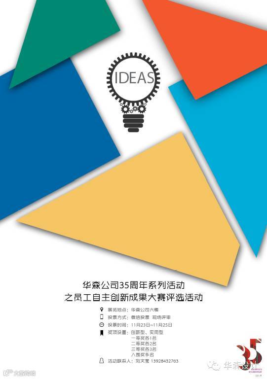 2015年9月,华森公司工会举办了华森公司35周年系列活动之员工自主创新成果大赛。经过一系列的作品收集、筛选、初审等工作,目前大赛所有入围作品已在华森公司六楼进行展出。