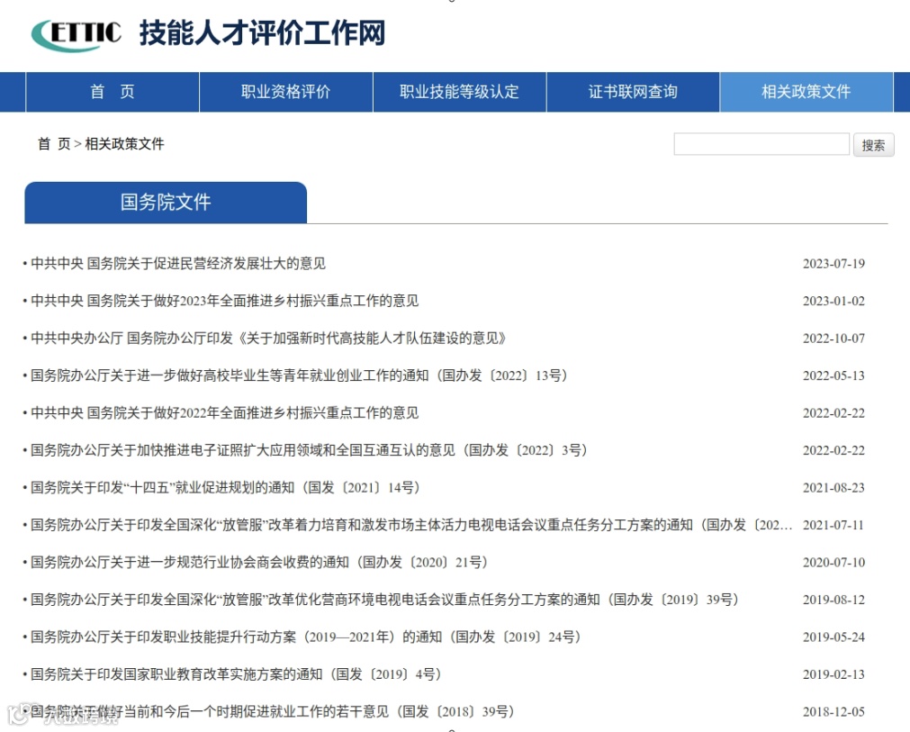 提供技能人才评价政策文件查询