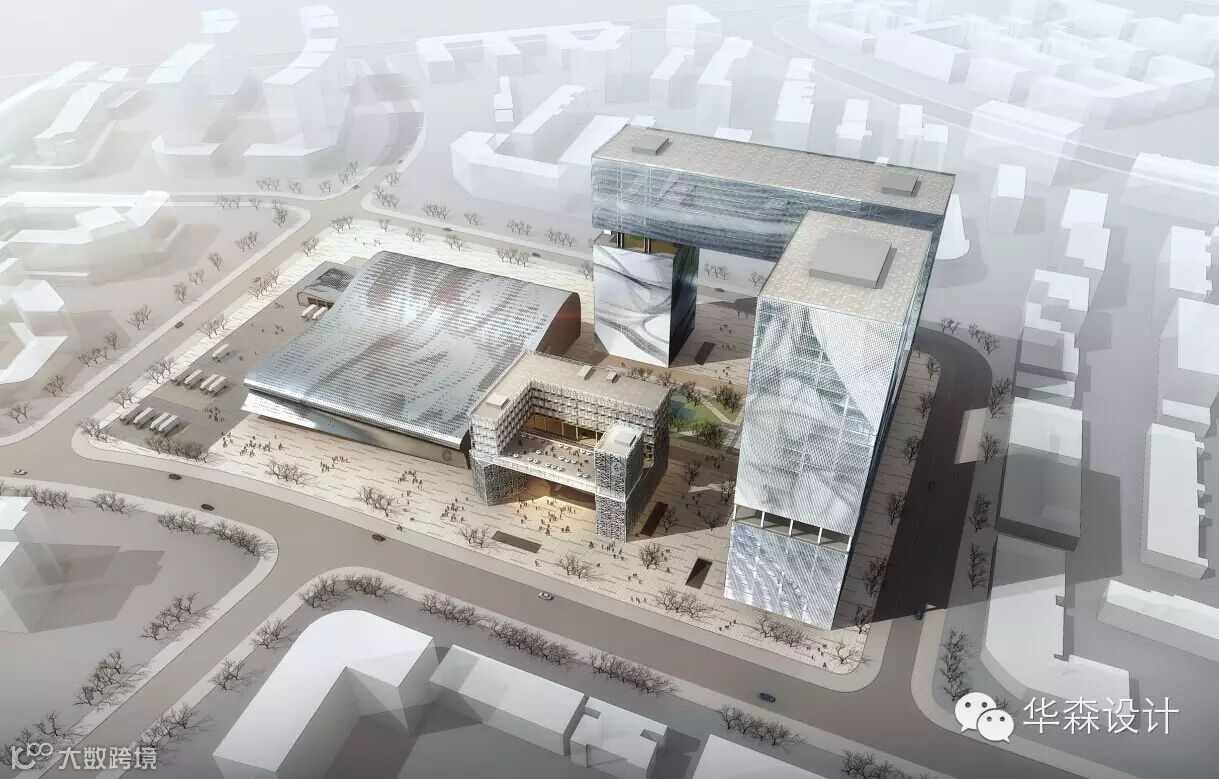 项目综合楼复合了办公、酒店、展示、培训、银行以及商业等功能,用简洁的“L”型建筑体量把以上复杂的功能空间统一成一个整体。依据这一空间特点,将塔楼主体及其下部裙楼与裙楼其它部分脱开,中间形成通过式的中庭,使两边的城市空间连通。立面以相同的竖向构件形成整个塔楼和裙房建筑的肌理。以精确、硬朗、统一的姿态和城市空间对话。