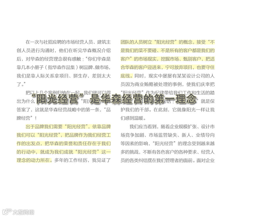 “阳光经营”是华森经营的第一理念——