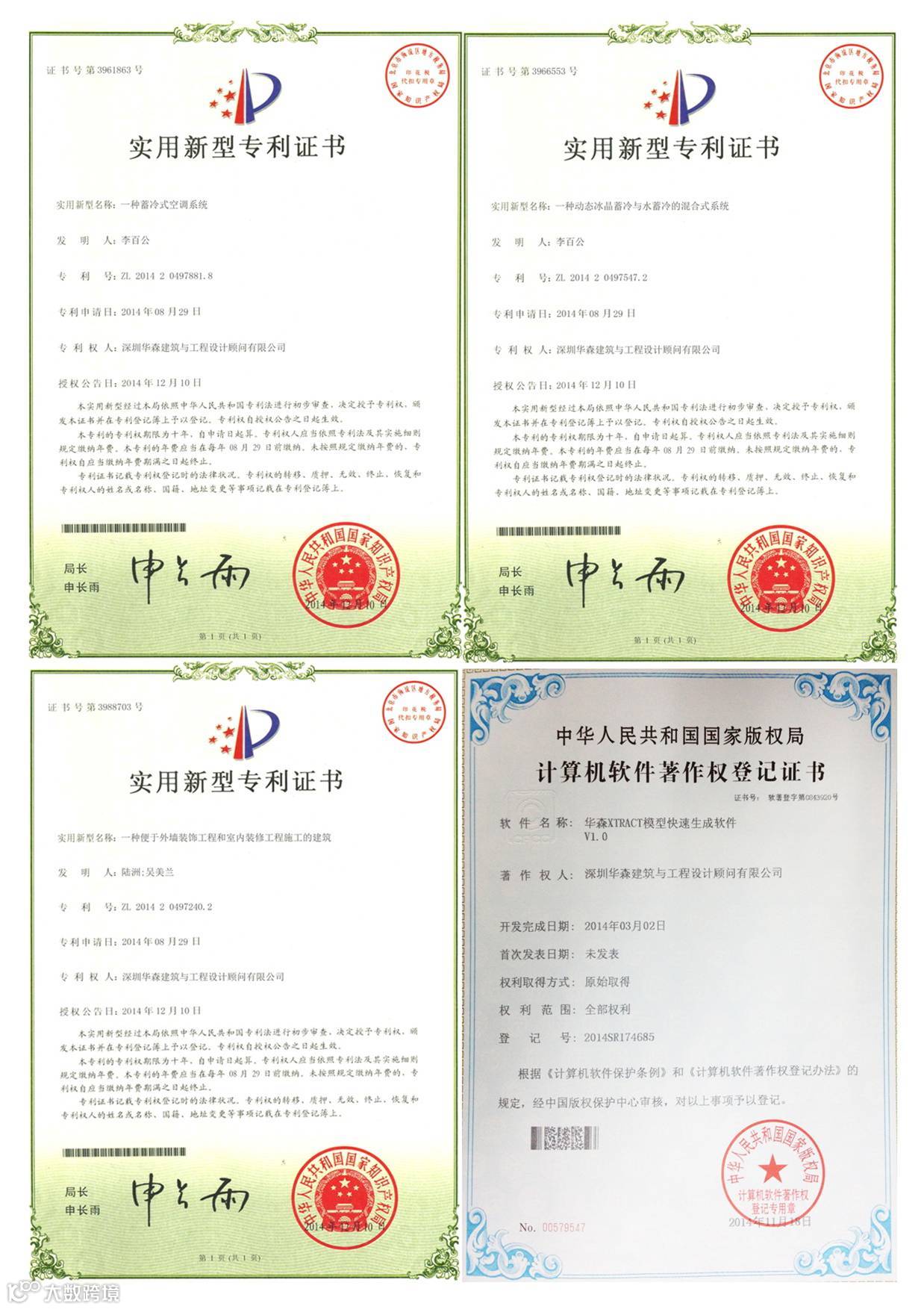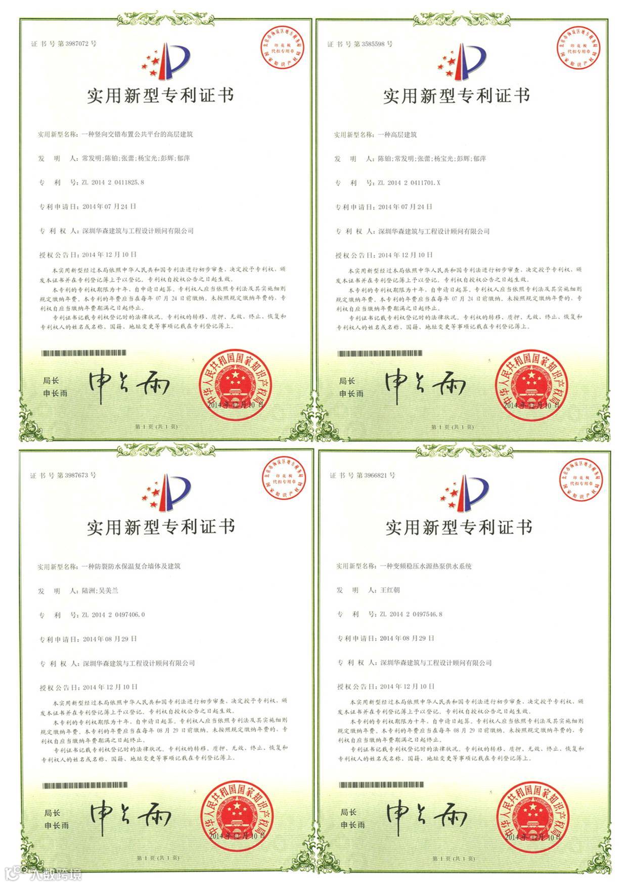 12月初,华森公司获得国家专利局下发实用新型专利证书7项,软件著作权证书1项。截止发稿日,另有4项发明专利已进入公示阶段。上述专利证书的获得填补了公司专利空白,实现了华森自主知识产权专利零的突破,赢得了声誉,同时为公司“高新技术企业”认定工作提供了有力的保障。